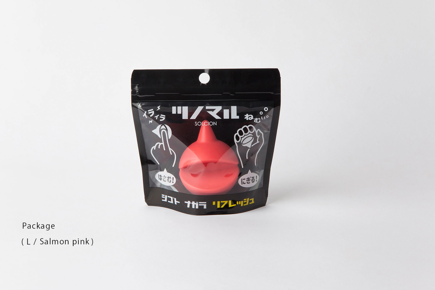 Mr. Tsuno is a handy massager that you can keep on your desk for when you want to get a boost. ("Tsuno" is Japanese for "horn"). Offered in size S (set of two and L (contains 1). Freshen up one of three ways -- gripping, inserting, and pushing.