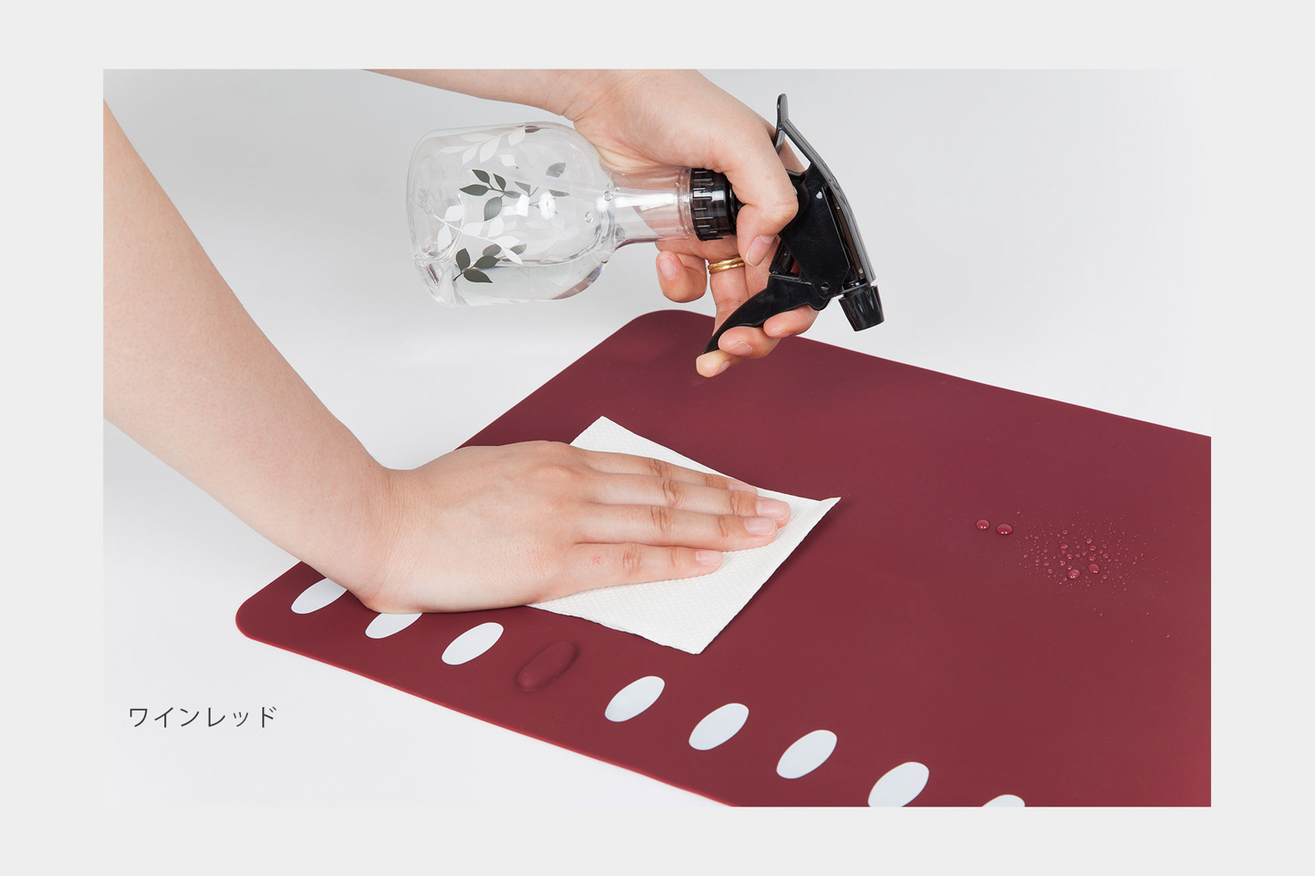 箸置きが一体になったランチョンマットです。 落ち着いた質感と色味が料理をさりげなくひきたててくれます。 いつもの食卓にもおもてなしにも、お使いいただけます。 表面が汚れた際は、水や除菌スプレーを使って拭くだけで簡単に汚れが取れます。シリコーンゴム製で耐熱温度が高いので、食洗機で洗うこともできます。使わない時は丸めたり折りたたんでしまっておけます。やわらかいシリコン素材なので、たたんでもシワになりません。